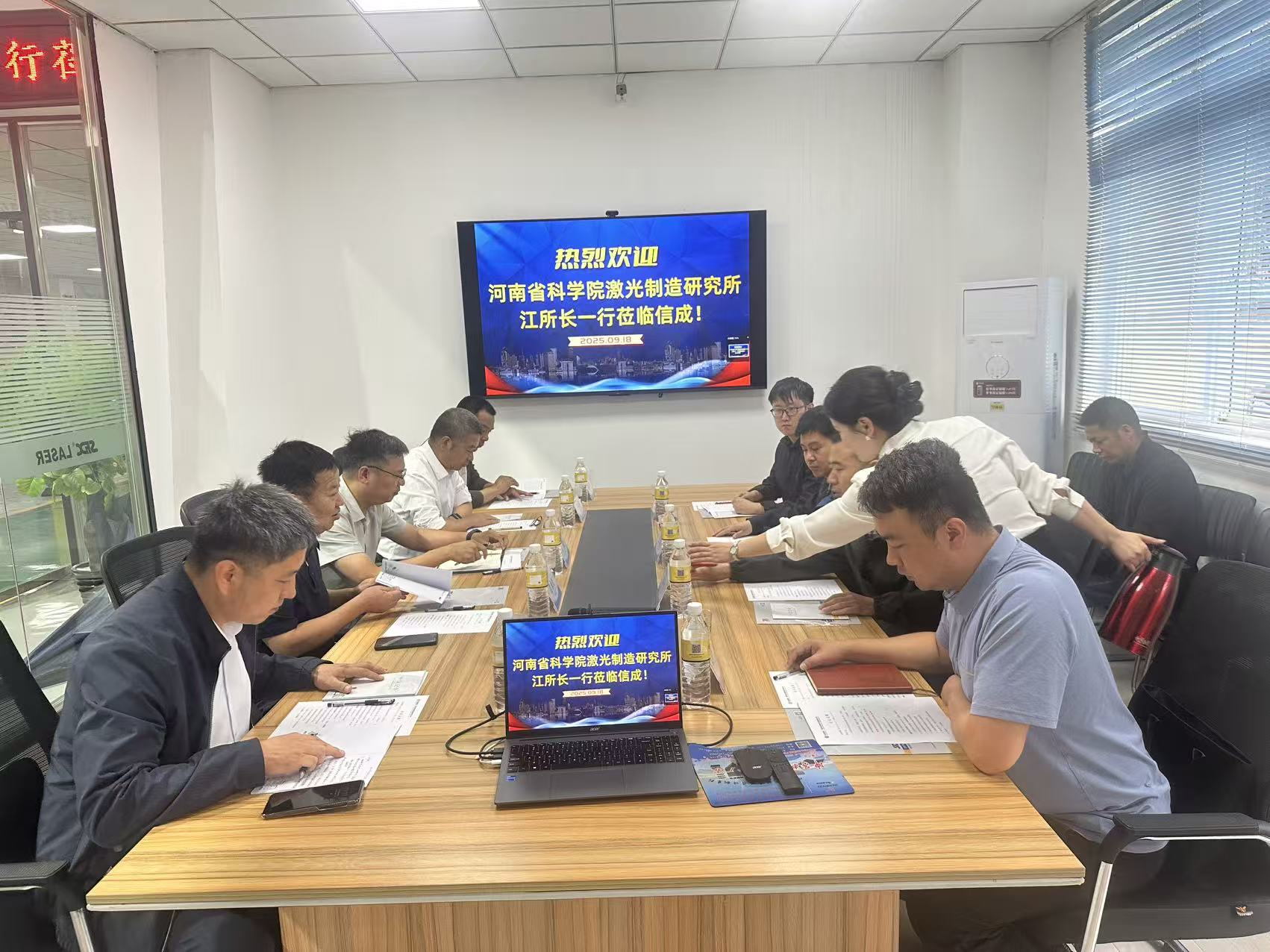 2025年9月18日,河南省科学院激光制造研究所所长江浩庆一行赴洛阳老城区开展调研交流活动。洛阳老城区委常委、统战部长李阳,洛阳老城区政府四级调研员袁永红,洛阳老城区科技局书记张伟刚,洛阳信成精密机械有限公司董事长丁向阳,洛阳速飞信激光智能装备有限公司总经理张少波,洛阳迪赛机械设备有限公司副总经理陶文辉及相关部门负责人全程参加交流活动。