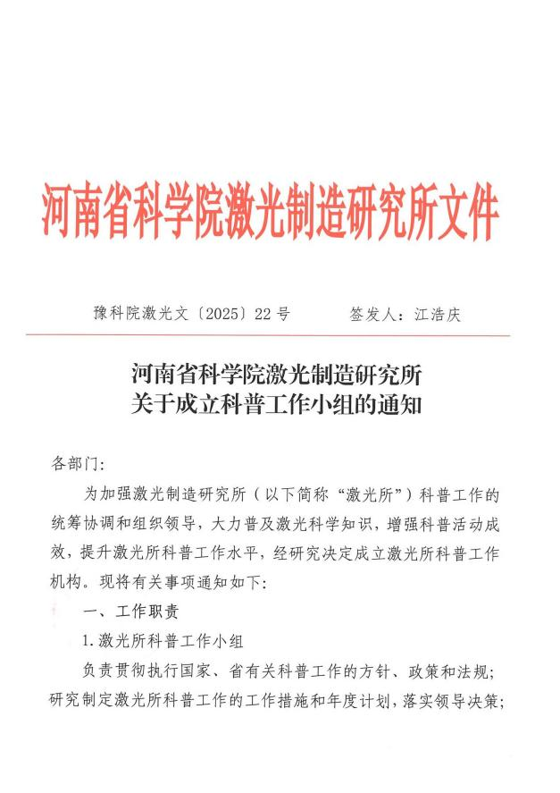 科普活动的有效开展离不开坚实的组织基础。为确保科普工作的常态化与规范化运作,我所成立由所领导牵头的科普工作小组,负责顶层设计与统筹协调,系统整合全所人、财、物等资源,制定中长期规划及年度目标,明确科普工作的权责主体、执行路径与协同机制,为科普工作提供组织支撑。