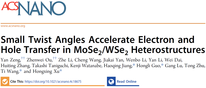 Small Twist Angles Accelerate Electron and Hole Transfer in MoSe2/WSe2 Heterostructures. ACS Nano, 2025, 19, 12138–12145. https://doi.org/10.1021/acsnano.4c18675