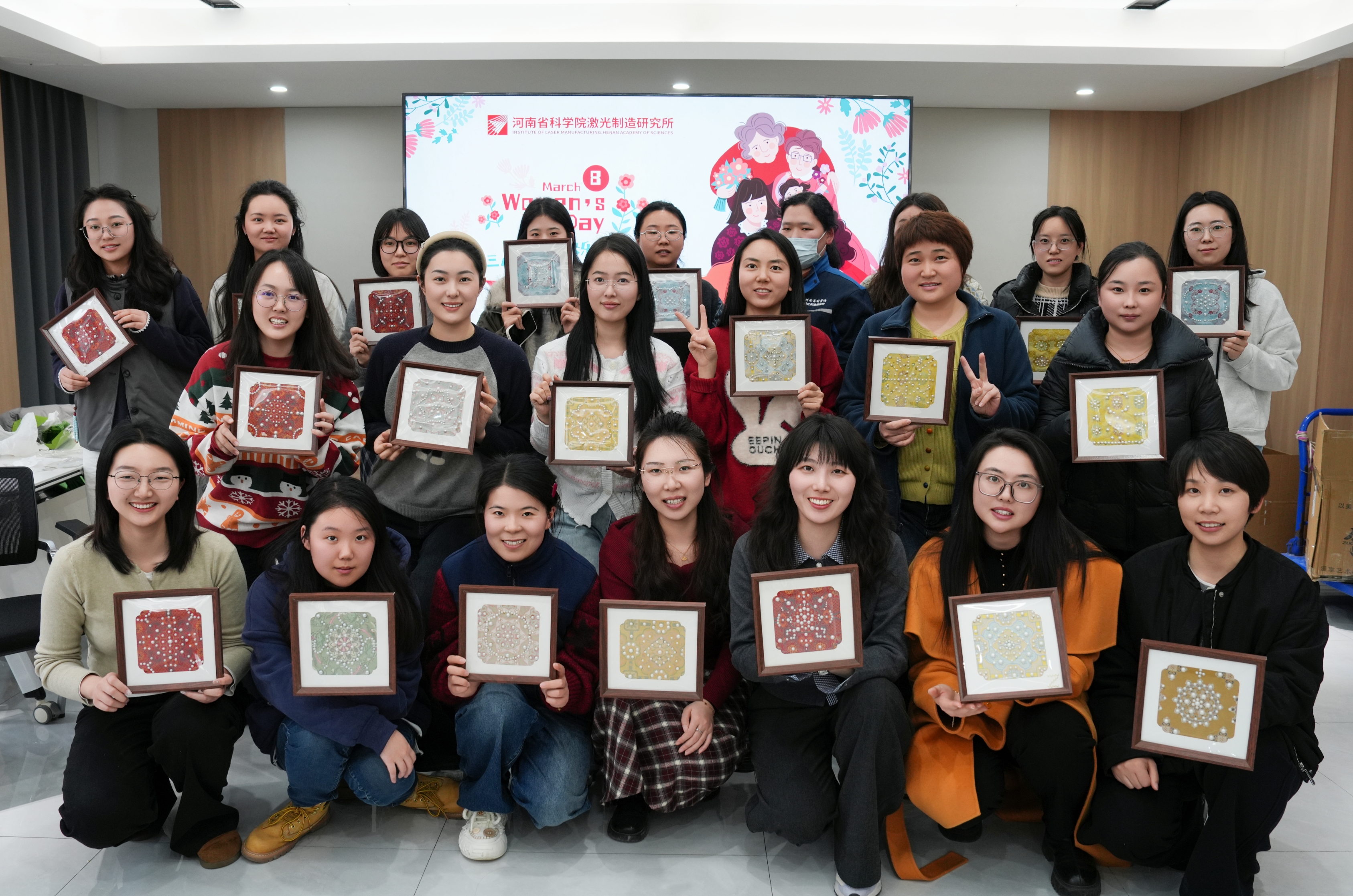 锦韵芳华绽风采——激光制造研究所开展“三八”妇女节宋锦珍珠画DIY主题活动